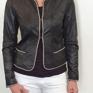 Bei diesem Artikel handelt es sich um eine außergewöhnliche Jacke, die als Ergänzung zu sportlichen oder edlen Outfits dient. Es sind 2 Taschen eingearbeitet. Als Verschluss dienen 4 nicht sichtbare Haken. Ein Glitzerband aus Ziersteinen bildet den Abschluss der Kanten. Die Jacke ist in verschiedenen Farben erhältlich. Der Artikel ist waschbar.