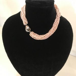 45 cm, versilberter Dekoringverschluss, mehrreihig gearbeitet, Süßwasserperlen