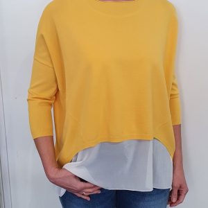 Hierbei handelt es sich um eine leicht ausgestellte, figurumspielende Strickware mit einem abknöpfbaren, weißen Top. Der Artikel ist in verschiedenen Farben erhältlich. Der Artikel ist waschbar.